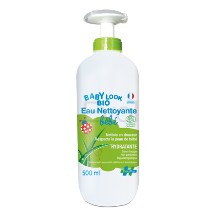 L'Eau nettoyante, fraîche et légère, débarbouille en douceur le visage et nettoie efficacement le corps et le siège, à l’aide d’un coton, sans rinçage.