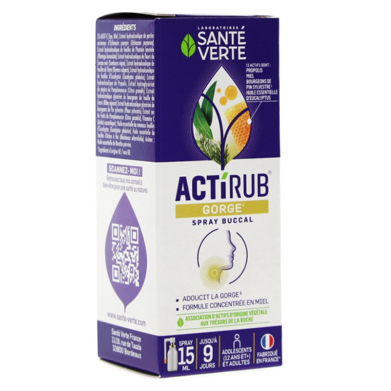 Santé Verte Actirub Spray Buccal 15 ml est un spray à la formule complexe contenant notamment du pin sylvestre qui contribue à adoucir la gorge pendant les périodes hivernales.