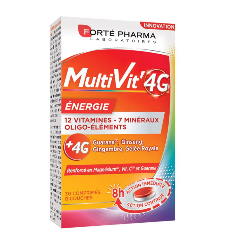 Soyez en forme tous les jours de la semaine avec MultiVit’4G Energie ! Il vous aide à couvrir vos besoins quotidiens en vitamines, minéraux et oligo-éléments.