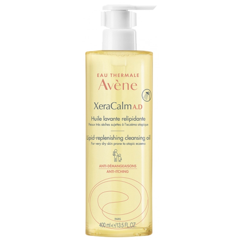Avène XeraCalm AD Huile Lavante Relipidante 400 ml enrichie en eau thermale d'Avène nettoie en douceur les peaux très sèches grâce à sa base lavante trè…